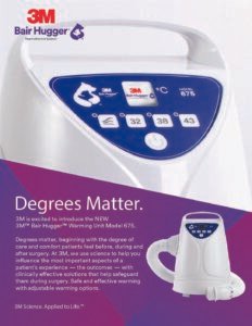 * Technology: Uses an electrical resistance heater combined with a quiet internal blower that pushes air through a lightweight, detachable hose into 3M Bair Hugger™ blankets or gowns with perforations that evenly distribute heat.