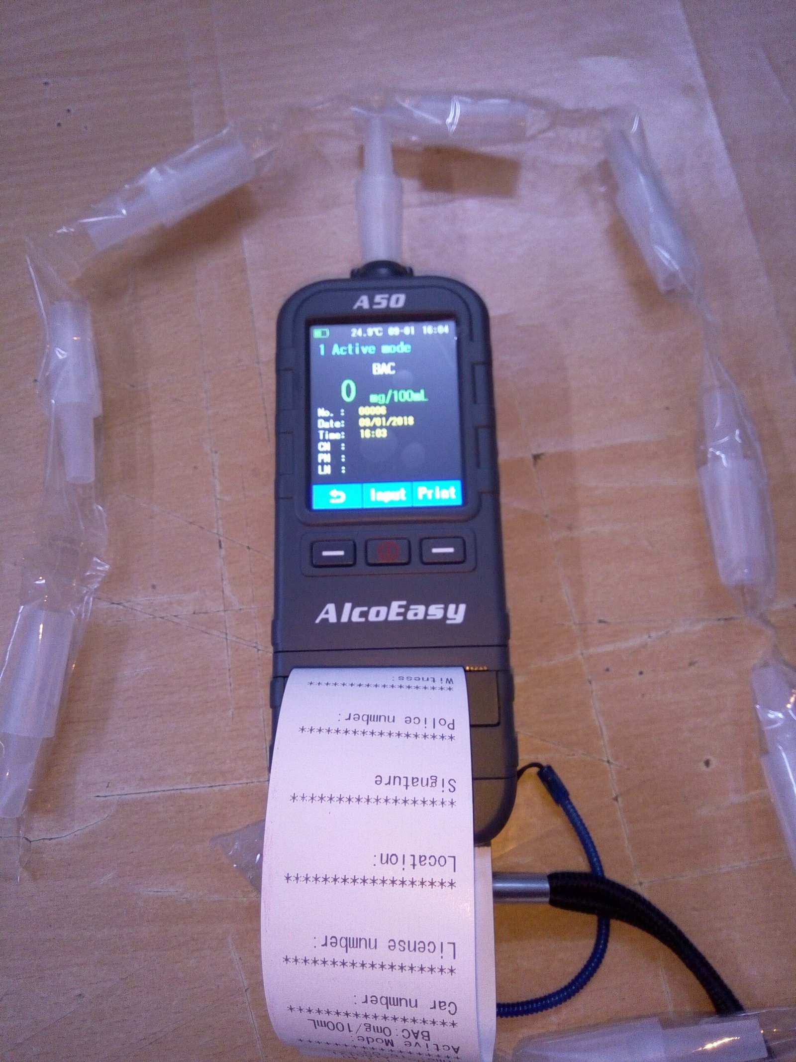 The AlcoEasy A50 is a professional-grade portable alcohol breath analyzer designed for quick and accurate detection of blood alcohol concentration (BAC). It is widely used by law enforcement, traffic police, industrial safety officers, and for personal monitoring.