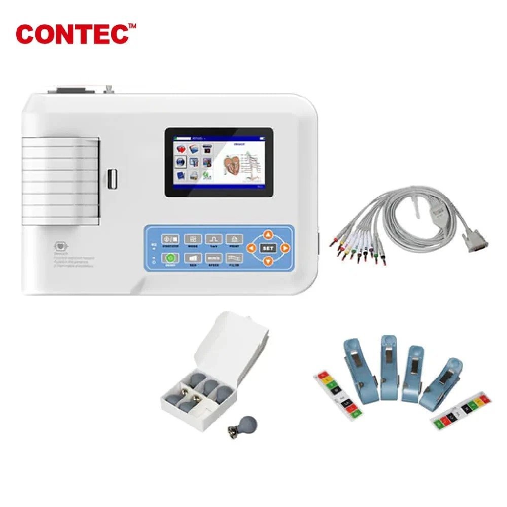 The Contec 3-Channel ECG Machine was introduced by THE MEDXP. It has the following features: multi-language interface, AC/DC, optional rhythm lead that makes it easy to observe irregular heart rhyth, case database management, ECG waveform recording and display in AUTO/MANUAL mode, automatic measurement and diagnosis of ECG waveform parameters, prompting for “Lead off” and “Lack of paper,” etc.