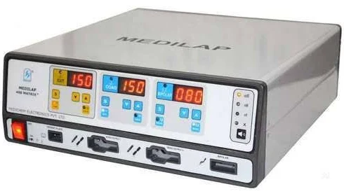 The MEDXP Introduces Medilap 400 Matrix+Electrosurgical Cautery Machine which has total 6 working modes, 2 monopolar modes, 2 bipolar modes and 2 coag modes. It has a 400-watt high power, operating room generator/Electrosurgical Unit. The unit consists of a tissue impedance monitoring system, self-adjustment of power output to reduce the continuous power setting for different tissue needs, to provide user consistent performance with all digital display of power and modes.