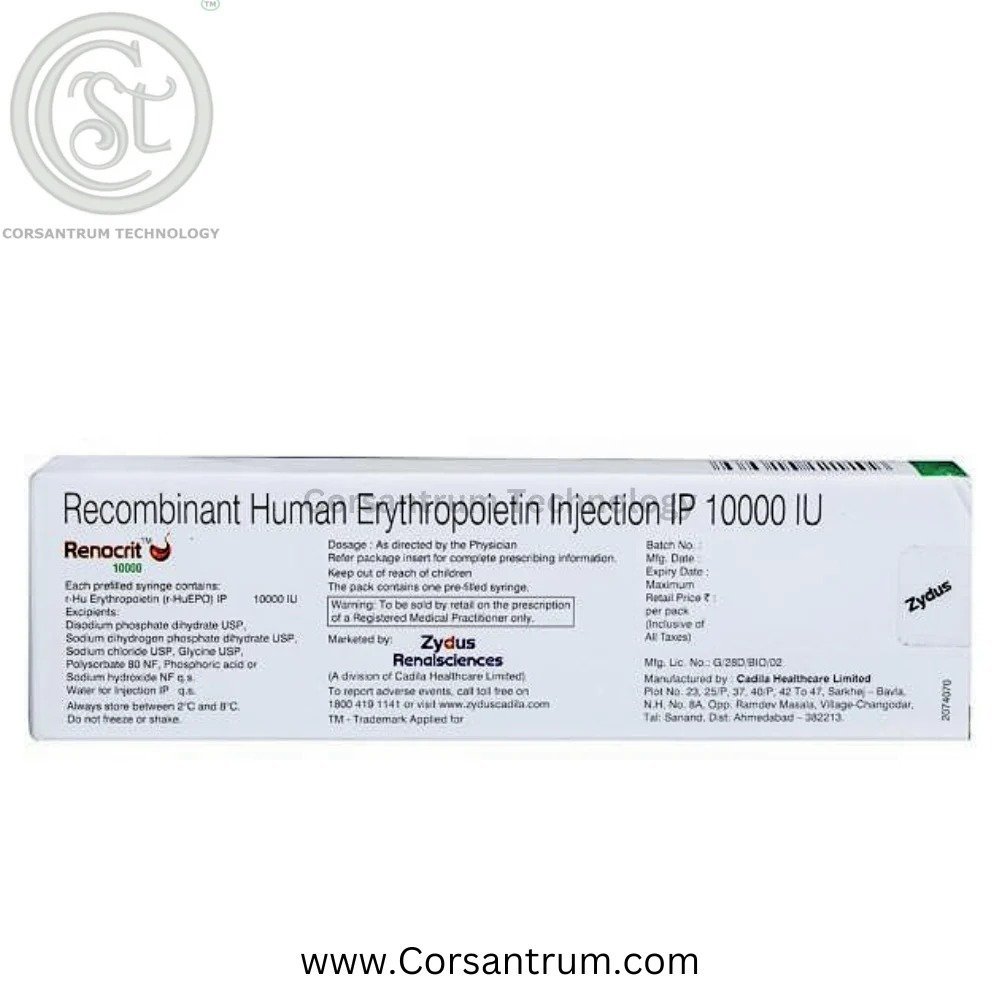 Renocrit 10000 Injection is a medicine that helps your bone marrow to produce more red blood cells. It is used to treat a type of anemia caused by kidney disease. It is also used to treat anemia caused by cancer chemotherapy and by taking medicines to treat HIV.