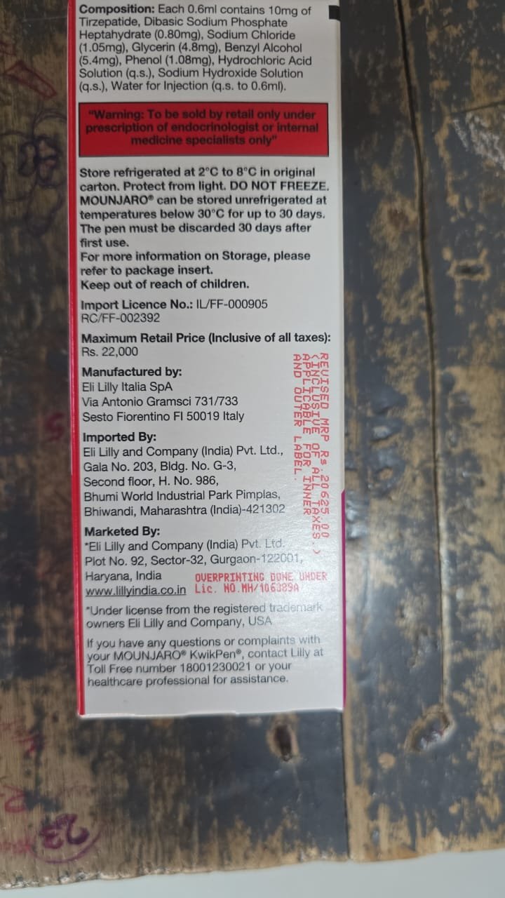 ⭐ Tirzepatide Mounjaro KwikPen 10 mg PFP Injection (0.6 ml)